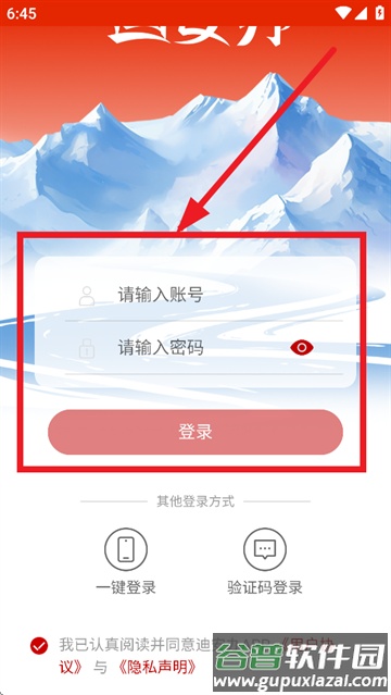 安装并打开迪安办app后,在登录界面可直接输入账号与密码完成登录。