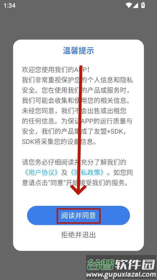 下载并安装气泡音乐app,打开后阅读并同意相关协议。