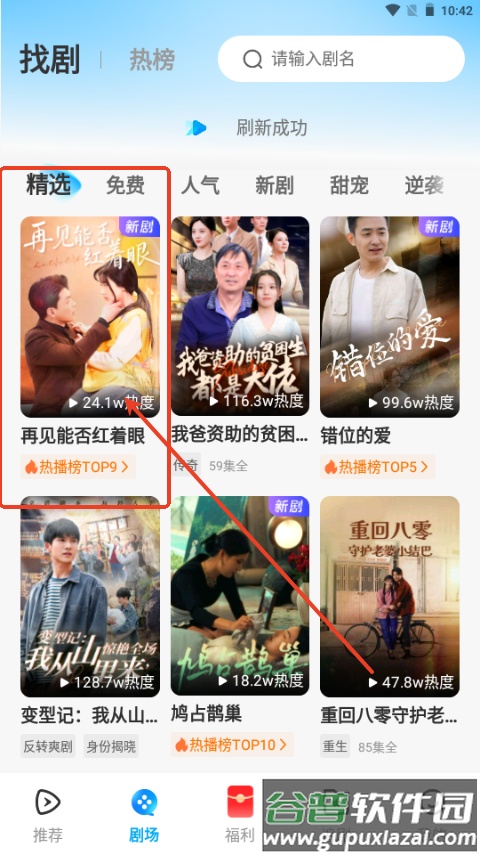 4.如果未找到想看的剧,可以使用顶部的搜索功能直接查找。