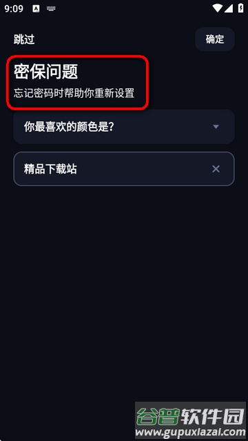 3、如果担心遗忘密码,可以接着设置一个密保问题以备找回。