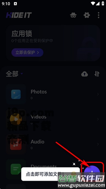 4、进入软件主界面后,点击加号即可开始添加需要加密的文件。