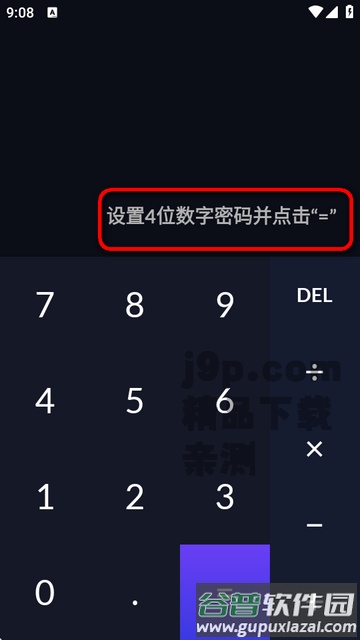 2、设置一个四位数字的密码,并点击界面上的等号按钮进行确认。