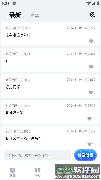 5、应用内设有吐槽墙板块,供用户分享阅读感受。