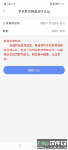 3. 进入认证页面后,输入需认证人员的身份证号码与姓名,该功能也可为他人代办认证;信息填写完毕,点击“前往认证”。