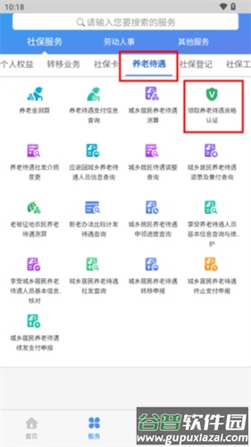 2. 点击“更多服务”,在服务列表中找到“养老待遇”栏目,选择其中的“领取养老待遇资格认证”功能。