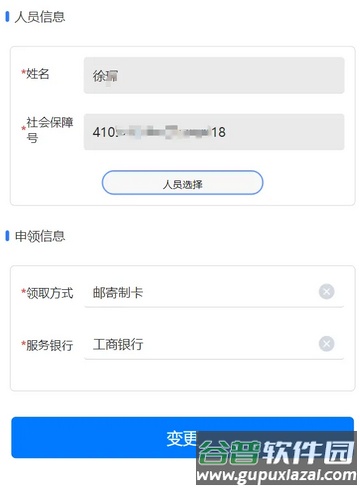 选择要变更的领取方式与服务银行,点击变更按钮。