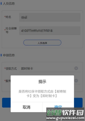 完成申领后,若尚未进入制卡流程,希望修改领取方式,可点击社保卡领取方式变更。