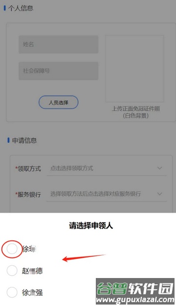 点击上传正面免冠证件照,选择符合要求的个人照片,系统将自动压缩过大图片,请耐心等待处理。