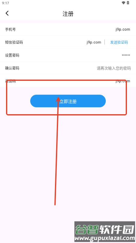 4、在注册页面输入手机号码并获取短信验证码;
