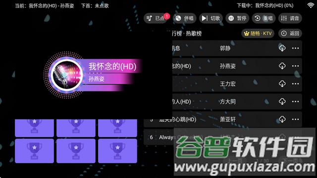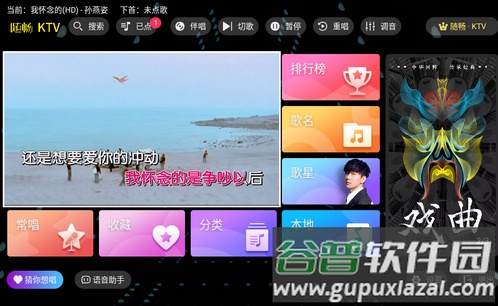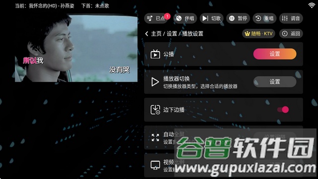 4、双击已播放的歌曲可进入MV界面,该界面支持伴唱、切歌等操作。