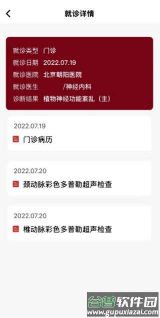 4、就诊资料详情完整,住院情况、时间、医生、诊断结果等均清晰展示;