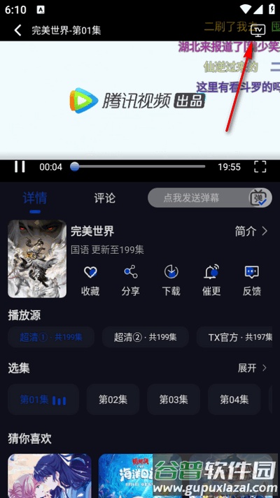 2、进入播放页面后,点击“TV投屏”按钮即可开始投屏。