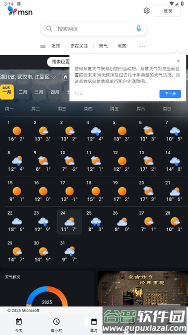 MSN天气是一款功能全面的气象服务工具,能够提供精准的逐小时、五日及十日天气预报。用户可以查阅风向、湿度、气压、能见度、露点及降水概率等丰富数据,并接收恶劣天气预警,实用性很强,推荐下载体验。