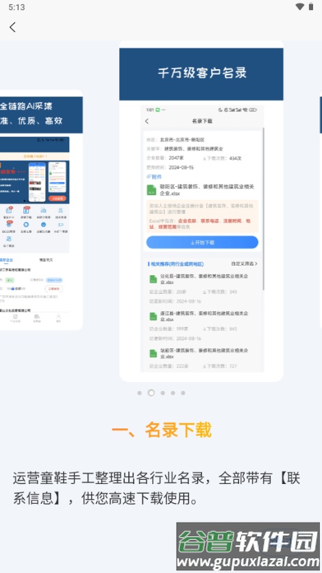 3、名录下载功能,运营人员手工整理各行业名录,均包含联系信息,可供用户高速下载使用。