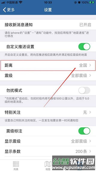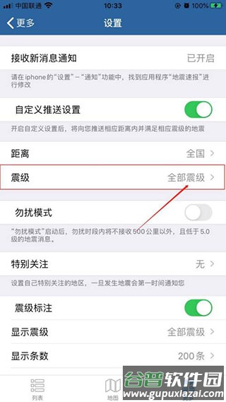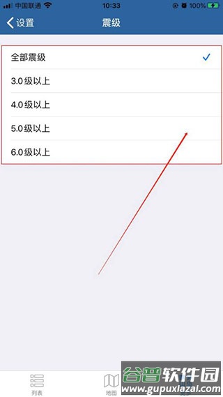 7、在震级设置列表中,选择接收全部震级信息或设定一个最低震级门槛。