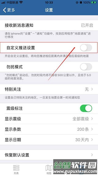3、在设置界面中,找到“自定义推送设置”并将其开关按钮开启。