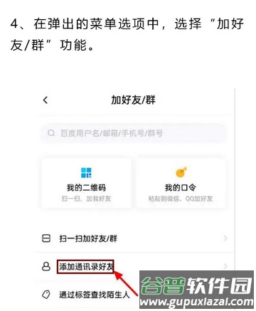 4 从弹出的菜单选项中选择【加好友/群】功能。