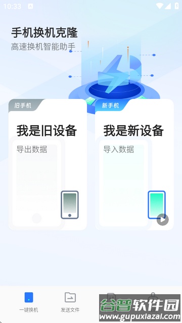 2、进入软件后选择一键换机功能,根据情况选择当前设备是旧设备还是新设备。