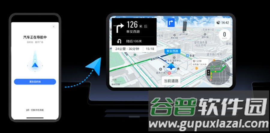 3. 当手机与车机登录同一账号,在车内使用手机规划并开始导航后,路线将自动同步至车机端继续导航。这一设计减少了手动分享的操作步骤,使互联体验更智能;用户可随时通过手机更改目的地,或将导航切换回手机执行。