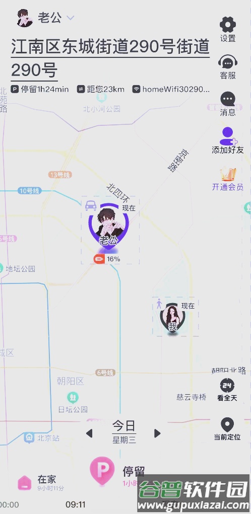 7、适用场景:适用于夫妻、小孩、老人的位置关注;随时了解实时位置、行程轨迹与停留时长;支持双向或单向定位;基础功能免费,提供24小时家庭安全守护。