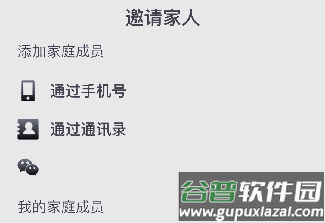 2、选择通过手机号或微信邀请家庭成员。