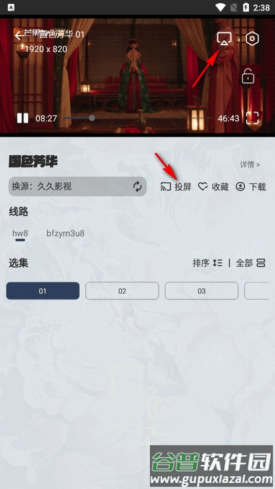 2、点击播放界面右上角的图标或下方的投屏按钮,即可连接设备进行投屏。