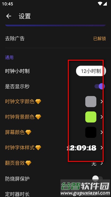 2、在设置页面内,用户可以按需调整时间制式、显示颜色以及时钟样式等多种参数。