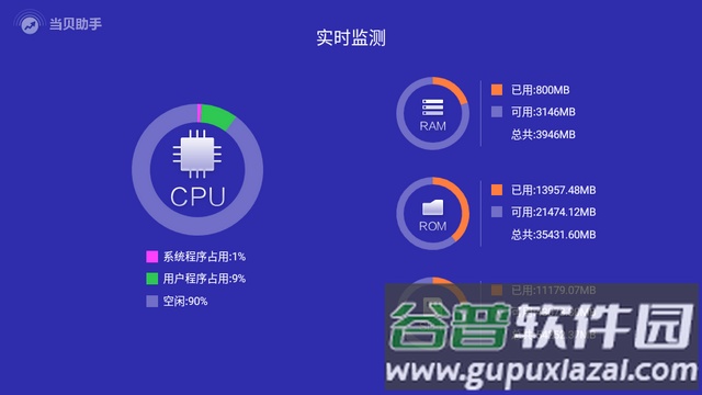 实时监测功能还能显示电视或盒子的CPU与内存占用情况,方便掌握运行状态。