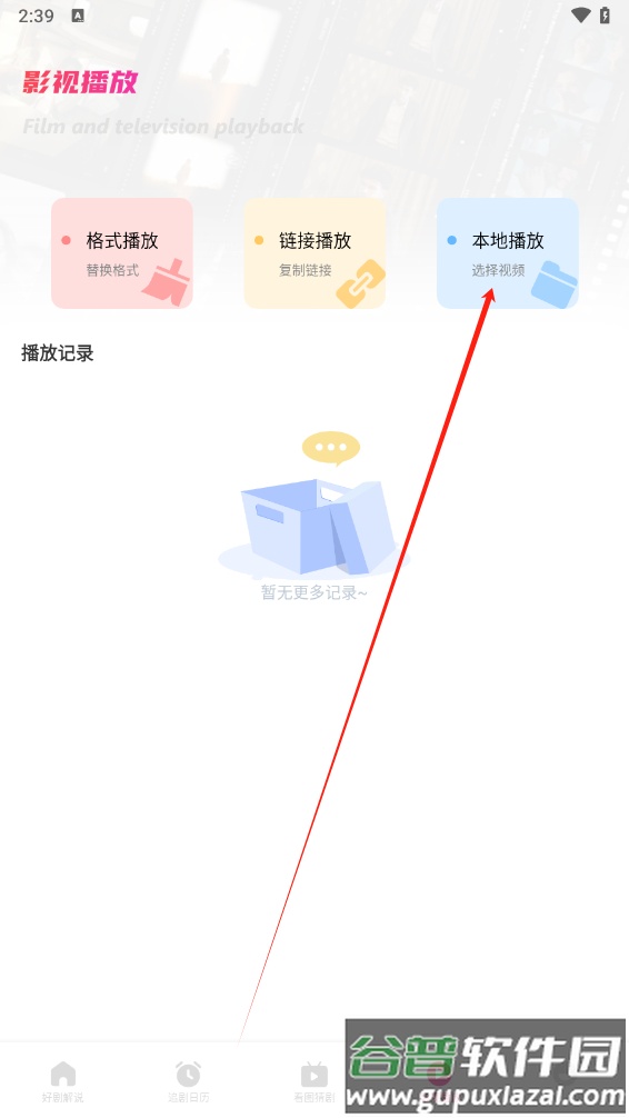 1、打开已安装的追剧达人播放器,点击界面中的影视播放入口;