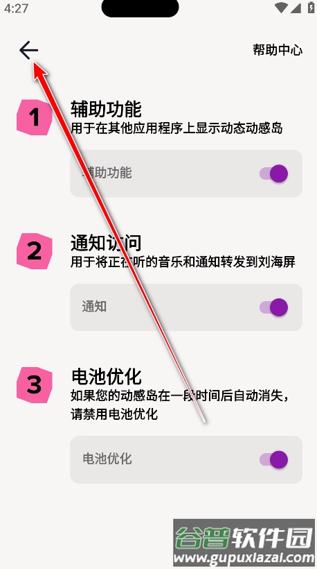 3.权限全部开启后界面会显示为下图样式;随后点击页面上的返回箭头。