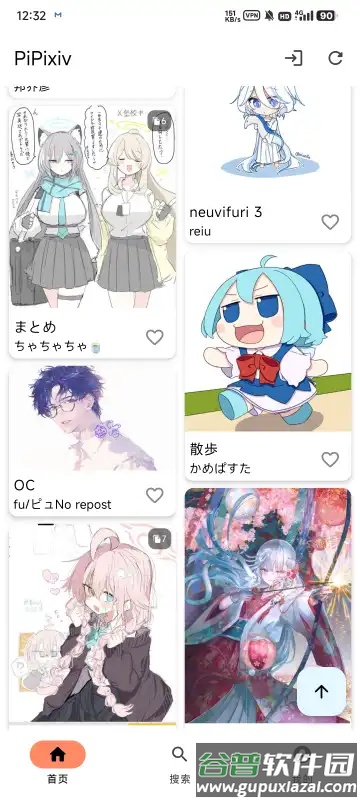 用户可使用原有Pixiv账户直接登录;软件首页会推送精选插图;支持通过关键词搜索作品,并能按热度、时间等方式排序;可以收藏喜欢的插图或关注创作者;查看插图详细信息及相关推荐内容;通过长按图片操作下载原始分辨率图像。