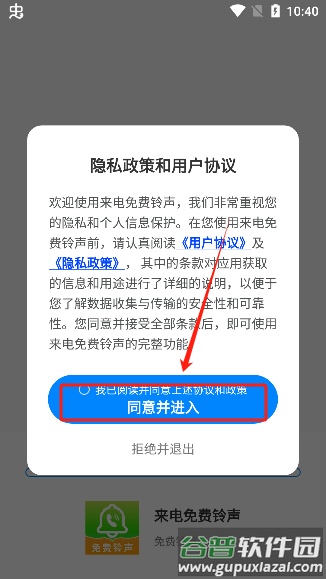 1、启动软件后,阅读并同意相关的隐私政策条款。