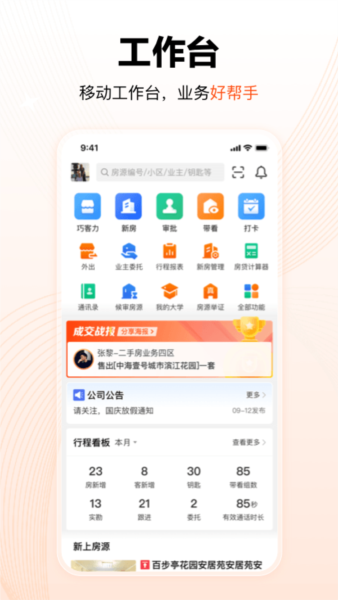 在线处理各类业务,包括房源、客源、带看与交易管理;