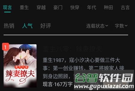 穿越、重生、现言、豪门、年代、古言等热门类别一应俱全,海量书库满足各种阅读需求。