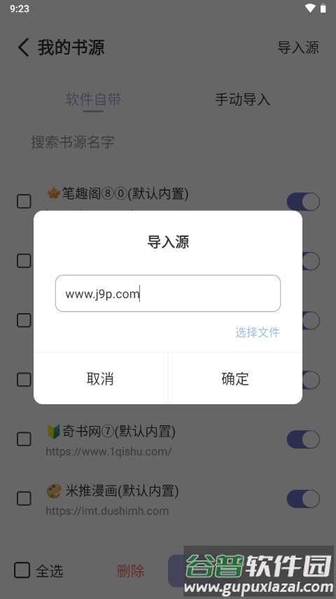 4、点击“导入源”,输入想要添加的书源链接;