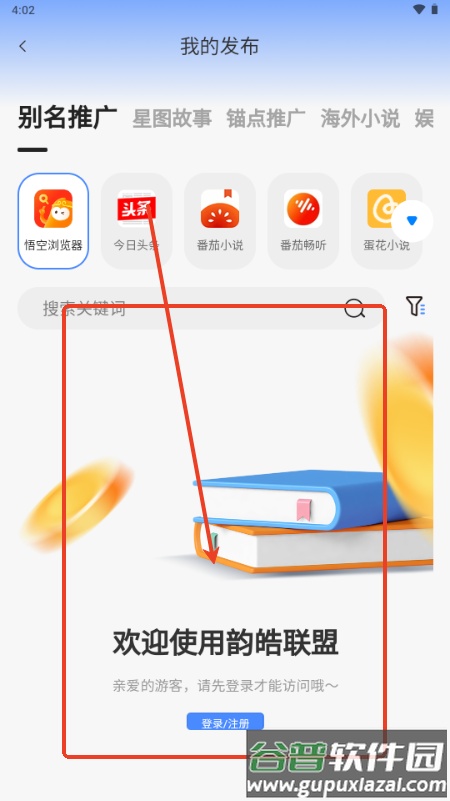 1、在应用主页浏览并选择一个你打算进行推广的平台;
