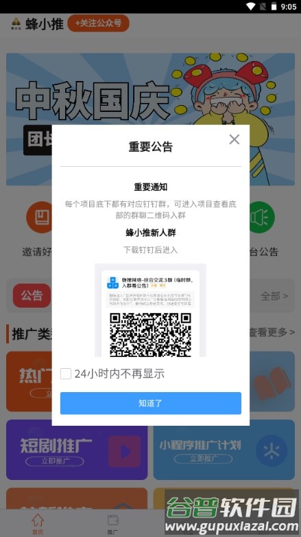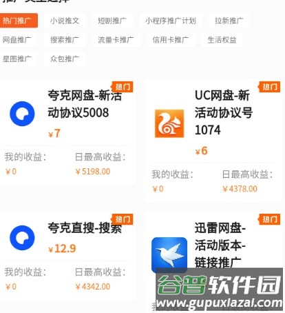 2、进入推广页面,浏览并选择适合自己的推广任务。