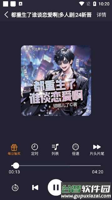 3、软件的实际使用体验与主流听书应用相近,具备倍速播放、跳过片头片尾、定时关闭等常见功能,所有资源均为真人情感演播,避免了机械化的语音效果。