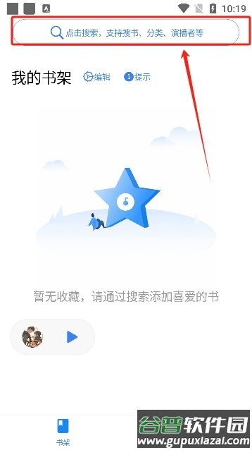 2、进入软件的书架界面,点击顶部的搜索框;