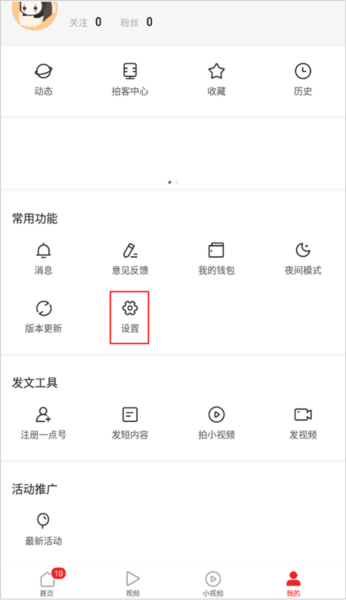 1、进入“我的”个人页面,找到常用功能区域,点击设置入口。