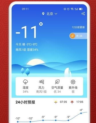 3、精准的实况天气:提供24小时与15天天气预报,覆盖全国多数城市与地区;