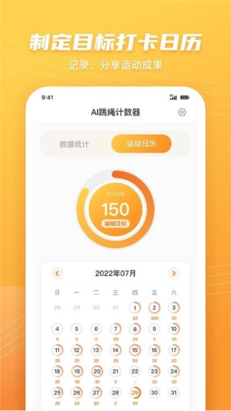 您可以自行设定运动目标,激励自己每日完成定量训练,并在日历上留下记录,提醒保持运动习惯;同时支持将成果分享给好友,共同见证进步。