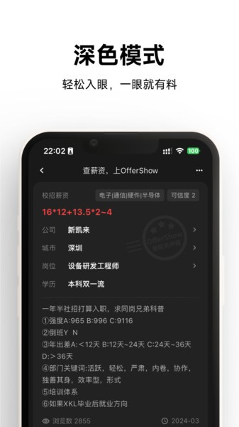 offershow薪资查询最新版本致力于成为学生和职场新人的得力助手。我们重视信息对称,专门开放了薪资查询服务,无论是实习、校招还是社招岗位,你都能查到可靠的薪酬数据,辅助你做出更合适的职业决定。