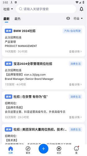 薪资透明化:展示各类岗位的具体薪酬范围,包括实习、校园招聘及社会招聘,帮助用户进行职业规划;
