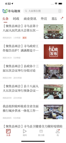 4. 设有多个新闻频道,如头条、文明实践、视频等,可自由切换阅读;