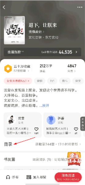 在书籍首页下方,找到“目录”按钮,点击进入;