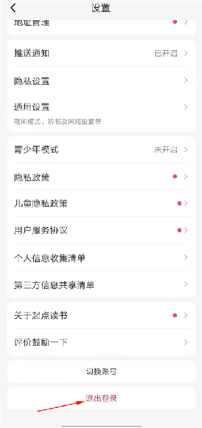 进入设置页面后向下滑动,找到并点击退出登录选项。