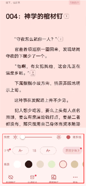 阅读体验:自定义背景和字体,日间夜间模式等贴心设计带来舒适感受;