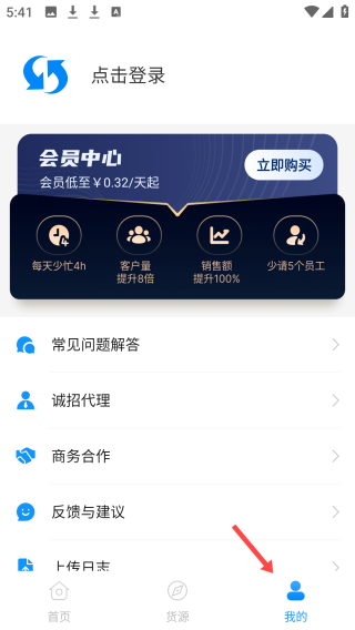 3、进入我的页面,显示登录提示,包含会员中心与优惠信息,并提供常见问题解答、代理招募等功能入口。