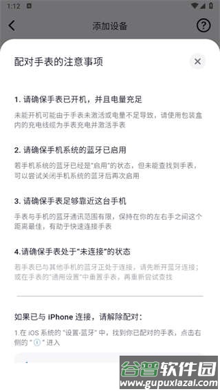 4. 配对手表时需注意相关事项,若配对失败,建议根据图示指引检查设备状态。